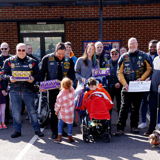 This is a regular event for the Widows Sons, but this year, to be able to donate more Easter eggs, the eggs weren't carried by motorcycle but arrived by car, and the Widows Sons presented a cheque for £100 to pay for the presents