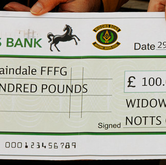 Richard Wheelhouse, the Chapter President, can be seen presenting the cheque to the school's Head Teacher, Mr Chris Evans, who is always very supportive of this event and expressed his sincere thanks to the Widows Sons and to all the other people whose hard work made this event possible